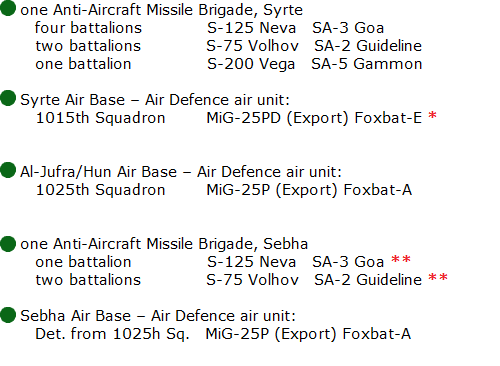 Libya began building a modern and integrated air defense system in the mid-1970s. They imported large numbered radars, surface-to-air missiles, communication and other related equipment were imported from the Soviet Union.